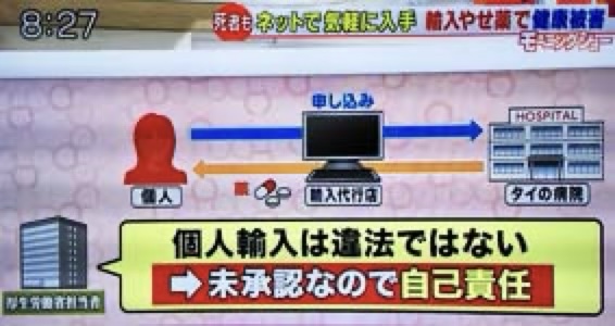 個人輸入自体は違法ではなく、服用自体は自己責任との厚労省の見解です。